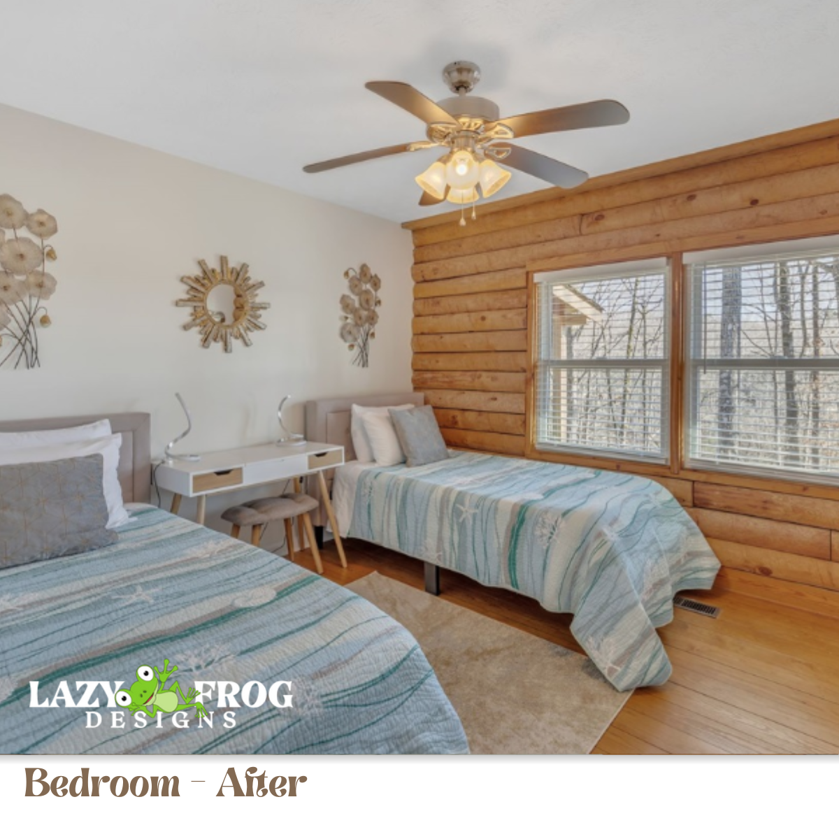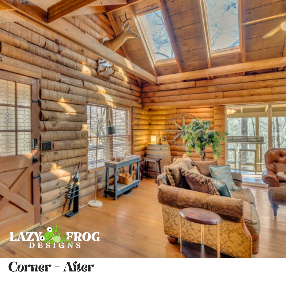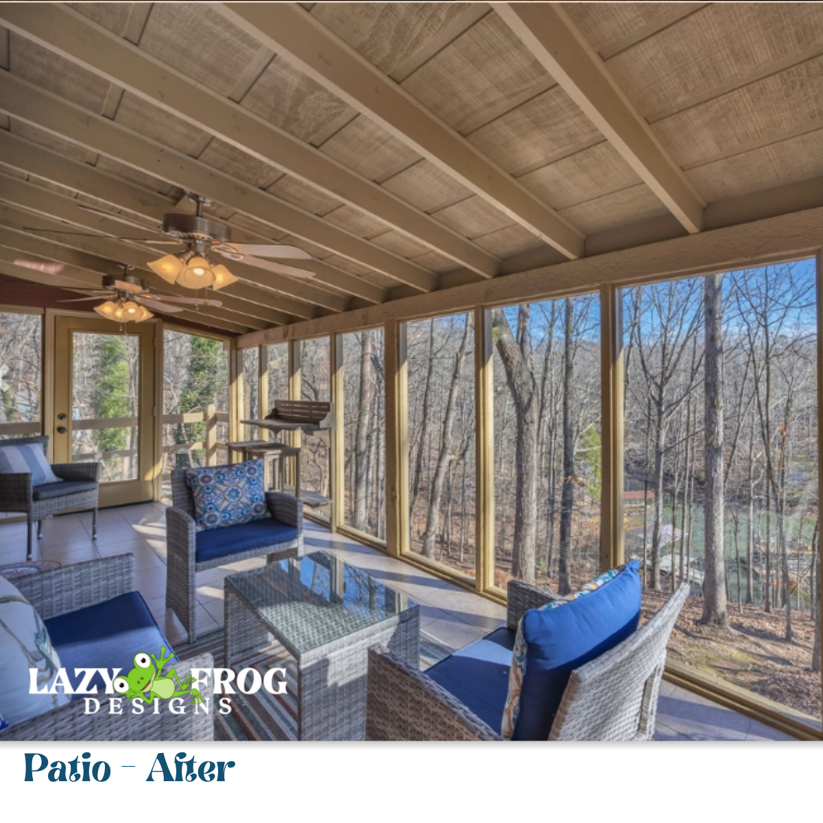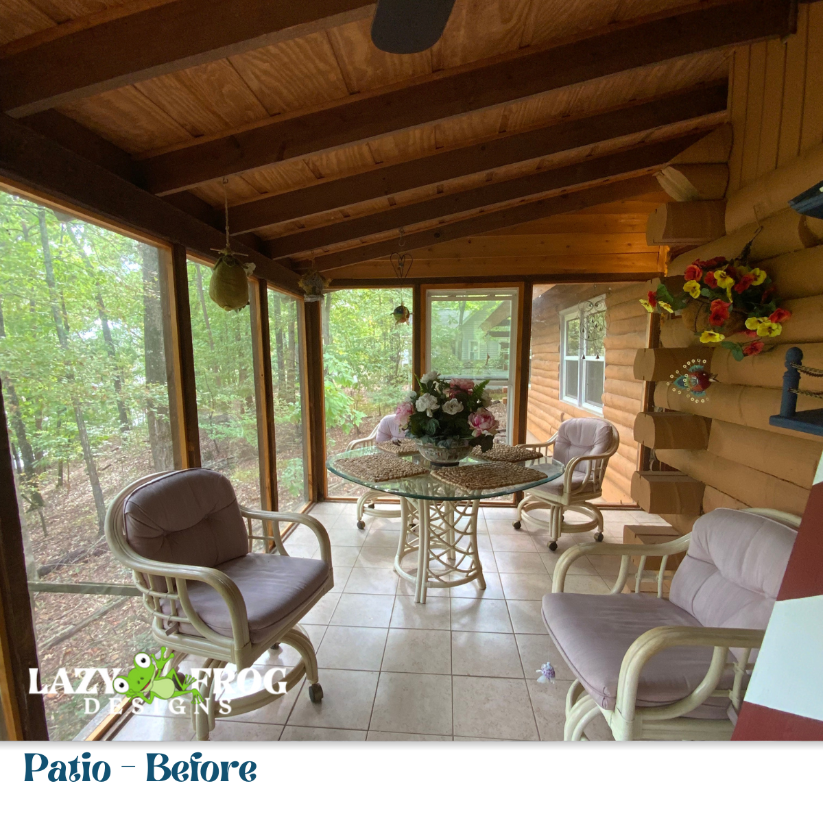 Besides new furniture, what else do you see? Check out how relaxing the painted ceiling is for this gorgeous porch facing the lake.